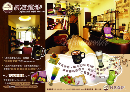 阿伏蘿得阿伏蘿得宣傳DM,以店內景觀為主,店內景觀為米果特約攝影師到現場拍攝的!
